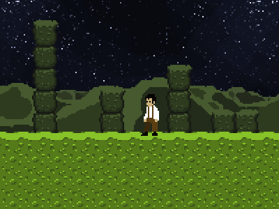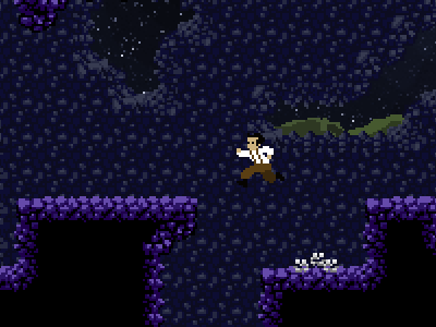 The jumping physics I experimented with in this game are a bit unusual. The player character cannot influence his momentum while he is in the air, which goes against the traditional expectations of most players for a platformer game.